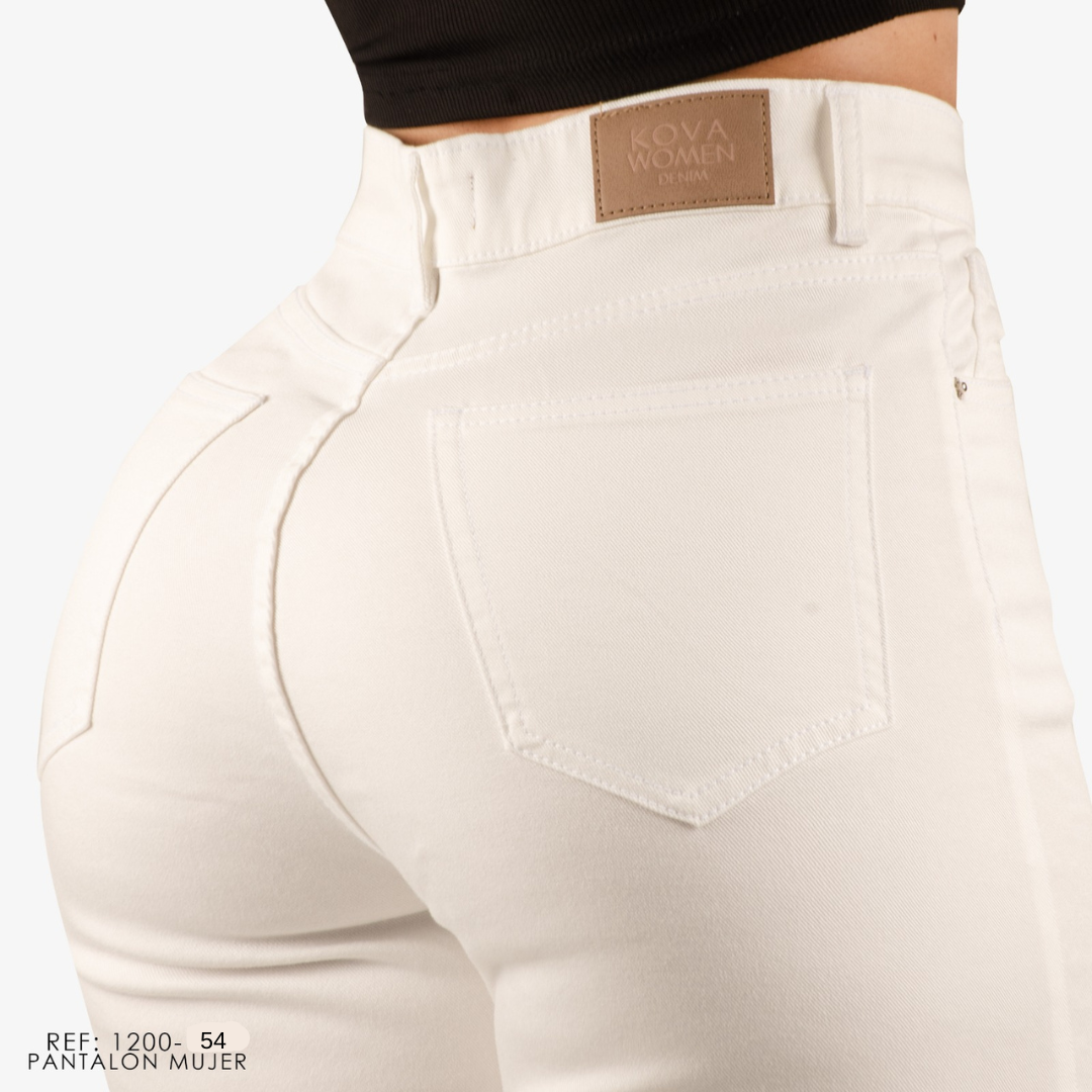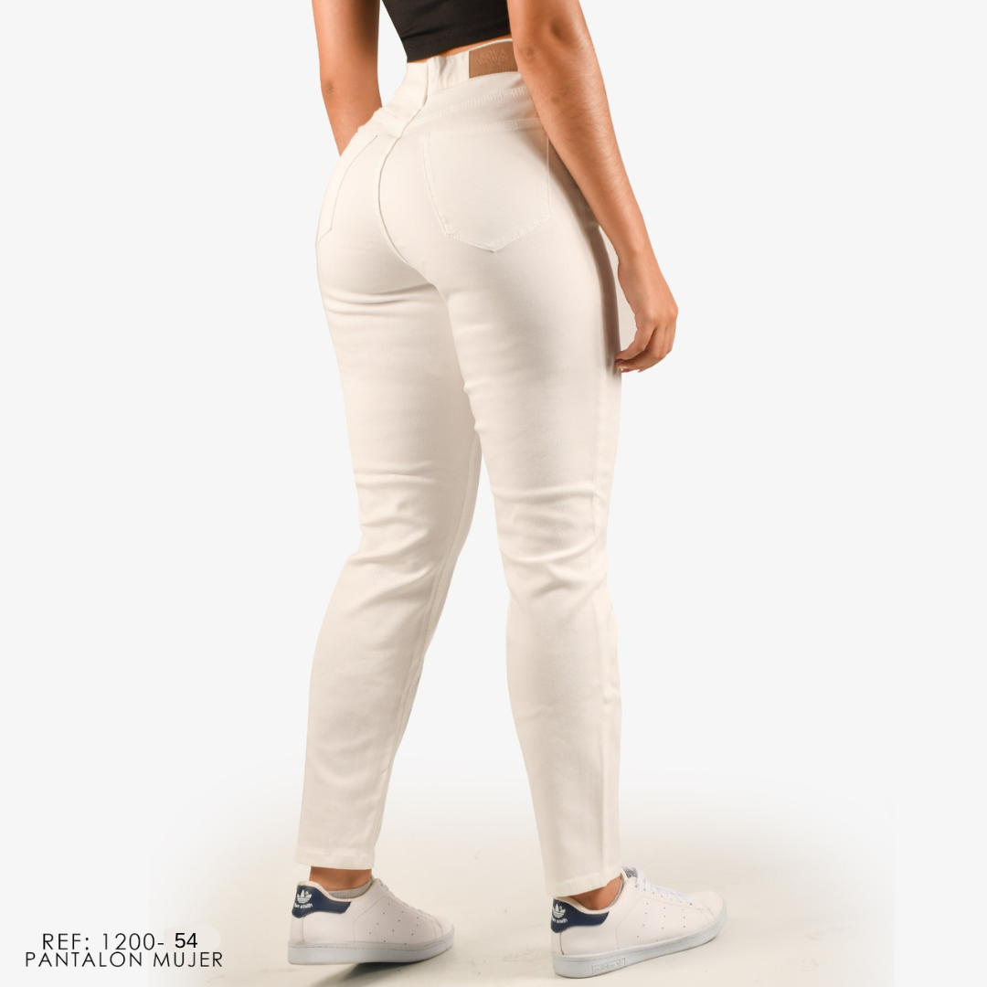 Jean de tiro alto en tela stretch, silueta tipo mom fit que se ajusta suavemente a la cintura y cadera, con un corte relajado en las piernas para un look fresco y cómodo. Su tono blanco hueso lo convierte en un básico versátil que combina con cualquier estilo, desde lo casual hasta lo más elegante.