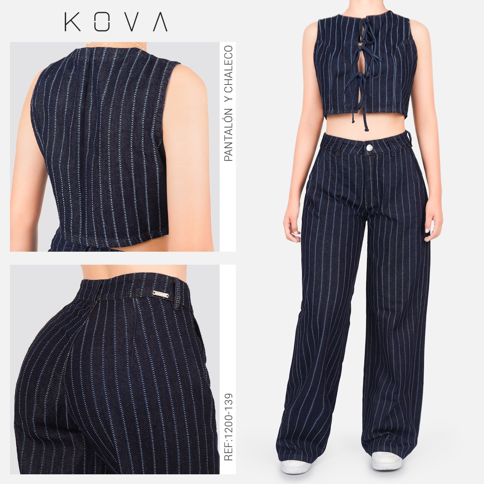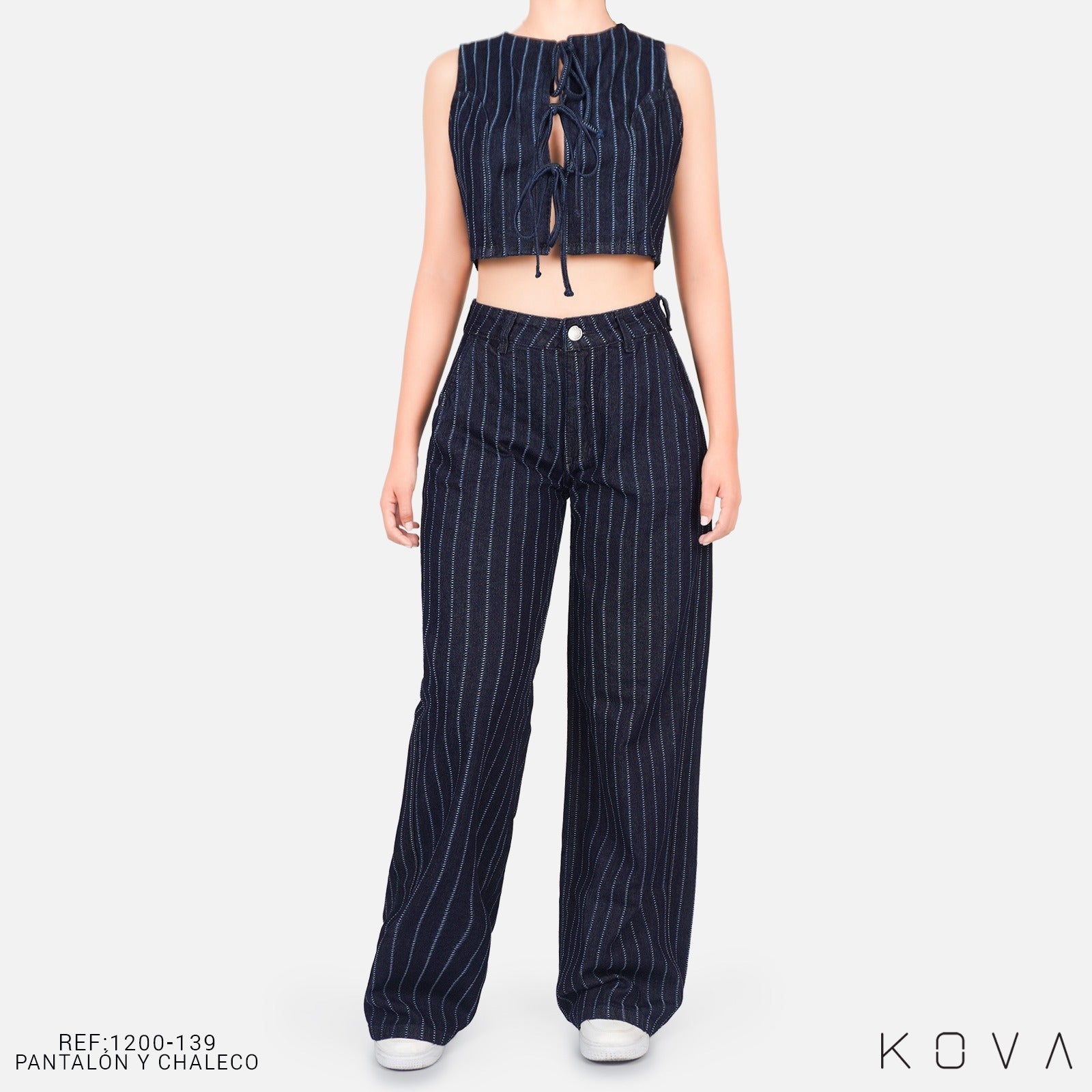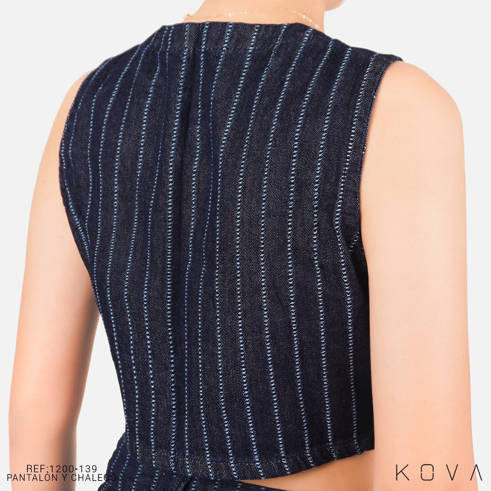 Set Pantalón Recto y Chaleco AZUL OSCURO – Ref. 1200-139